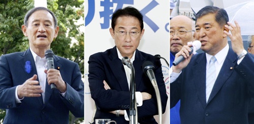 「ポスト安倍」の候補とされる(左から)菅官房長官、岸田政調会長、石破元幹事長(写真:共同通信)