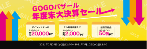 NTTぷららは「GOGOバザールセール-年度末大決算セール-」を開始した。期間は3月10日12時まで。