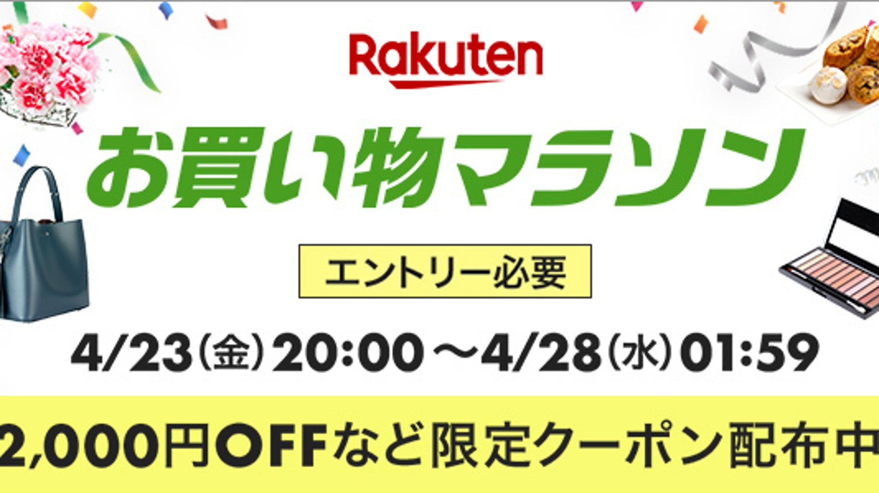 4月23日20時から28日1時59分の期間で「楽天お買い物マラソン」を開催中です。